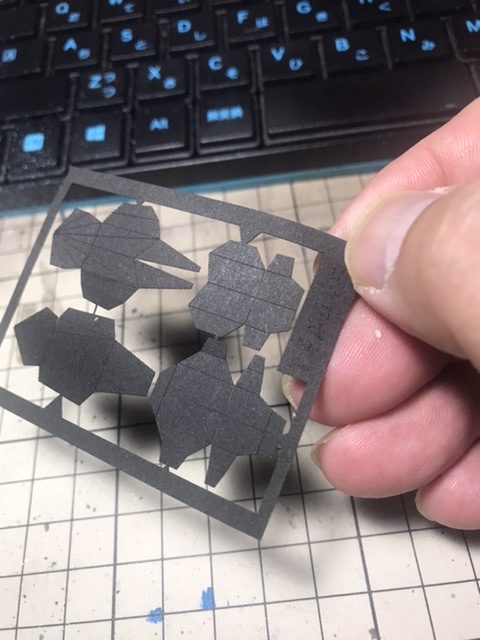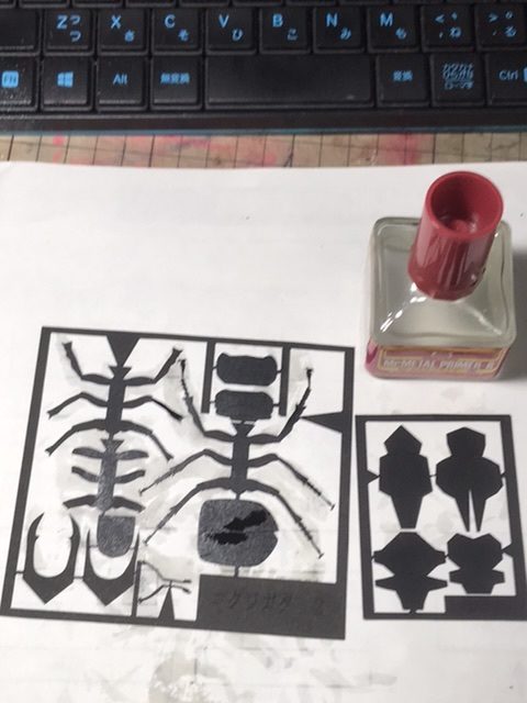 次は組立に入りますが その前に私は紙にプライマーを塗っておきます。これは紙に強度を持たせることと最後にポーズを決めるときに固まりやすいので GSIクレオスのMr.METAL PRIMER-Rを塗っておきます 1回塗りをした後 足の先だけはもう一度塗布します(2回塗り)作業中に足先がとれたりすることが少なくなるような気がします。