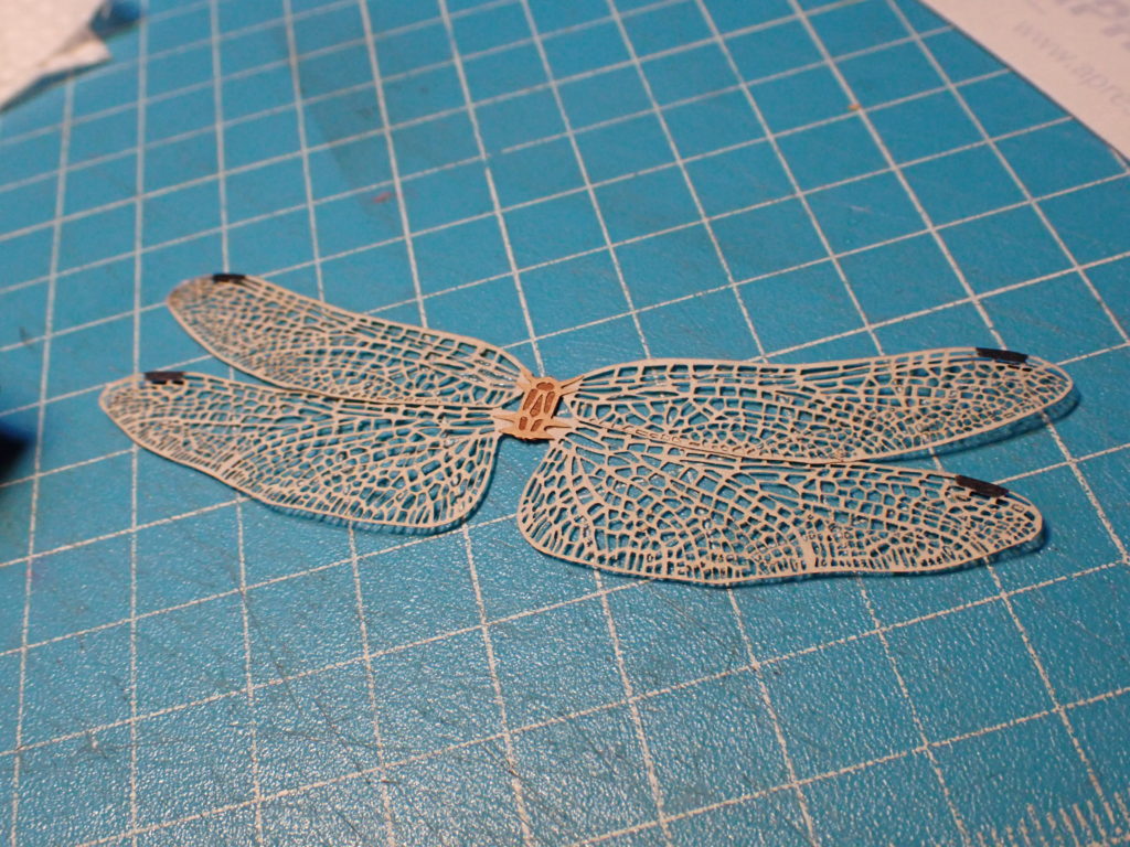 70㎏ 白 タント紙 をカットしたものです(トンボの羽で羽の長さは片翼5㎝弱です)