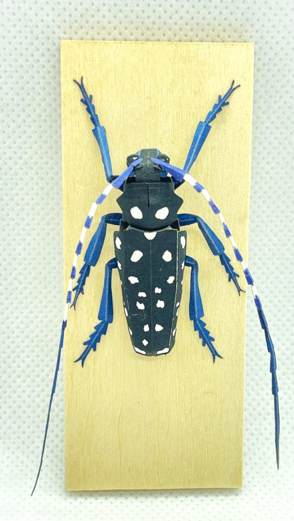 今までのカミキリムシより少し大きく作っています 体長約5㎝ 触覚を含めると8㎝程になりました